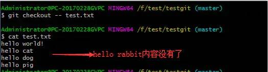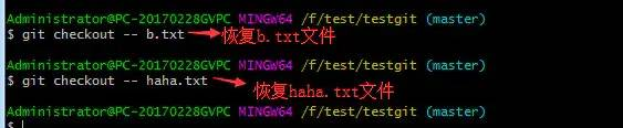 可以使用如下命令 git checkout -- b.txt,如下所示: