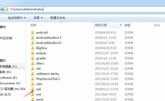然后打开ssh,看看这个目录下有没有id_rsa和id_rsa.pub这两个文件:
