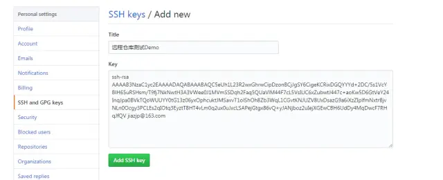 点“Add SSH Key”,你就应该看到已经添加的Key: