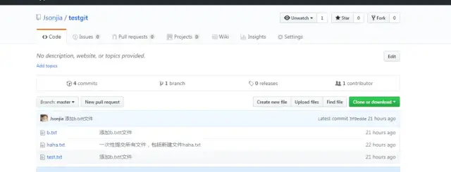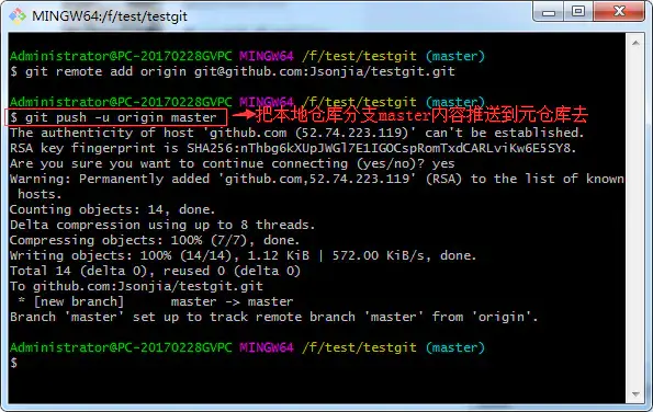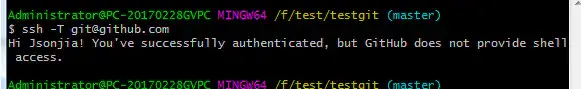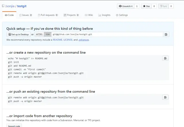$ git remote add origin 你的ssh地址 //我的是git@github.com:Jsonjia/testgit.git如下: