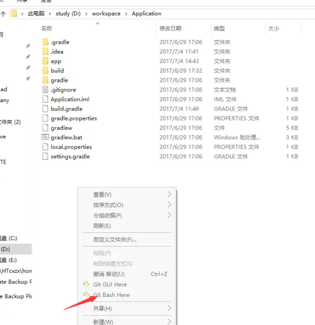 如果不是第一次提交本地代码到github上,直接在项目根目录下,右击,选择git Bash here,如下