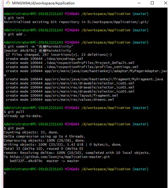 $ git commit -m "描述你提交哪些内容"