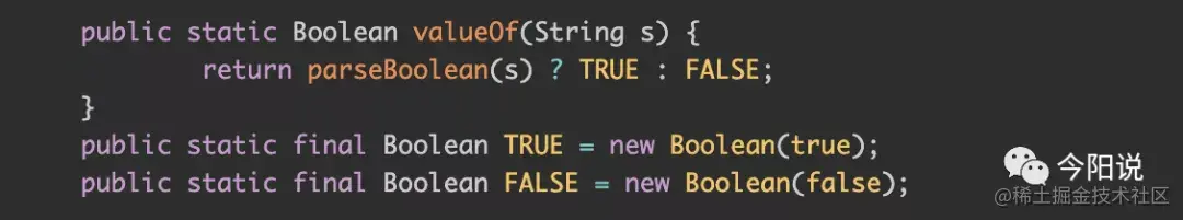 例1:将字符串转为boolean类型的实现方法,使用Boolean.valueOf("true")要优于new Boolean("true"),其源码内部实现如下:
