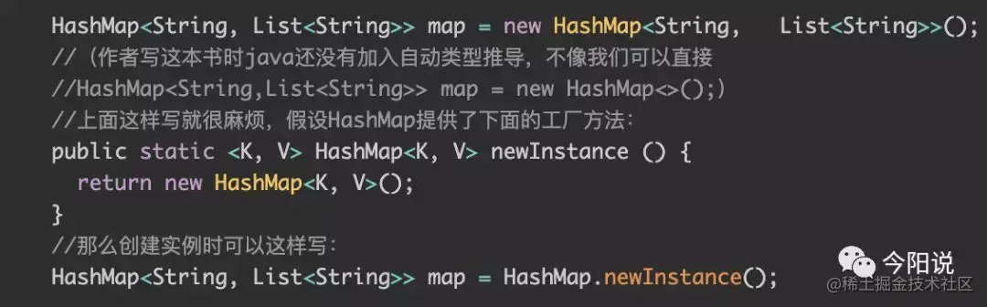 d. 创建参数化类型实例(即泛型)时,使代码更简洁,如: