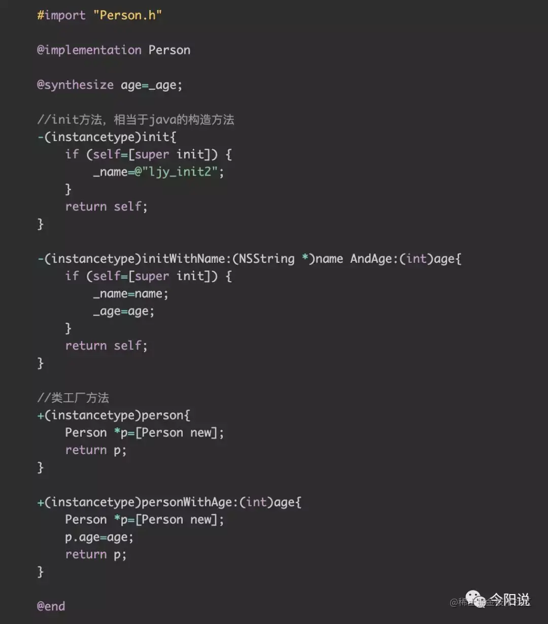 5. 之前有自学过iOS开发,静态工厂获取实例的方式,在Object-c中深有体现,只是他们叫做类工厂方法,就像下面代码这样: