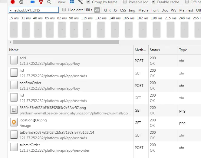 中划线除了可以给你提示,但是它本身的含义是取反,以上面需求为例,我们可以通过使用-.css -.js 来过滤掉 css 和 js 文件。-.css 和 -.js 中间使用空格分开,意思就是过滤掉 .css 和 .js 文件,比如你想过滤掉所有 OPTIONS 的请求,可以使用 -method:OPTIONS 来达到目的。