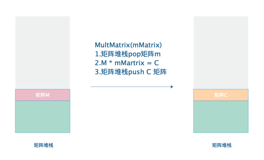 - 矩阵乘以矩阵堆栈顶部矩阵,相乘结果存储到堆栈的顶部