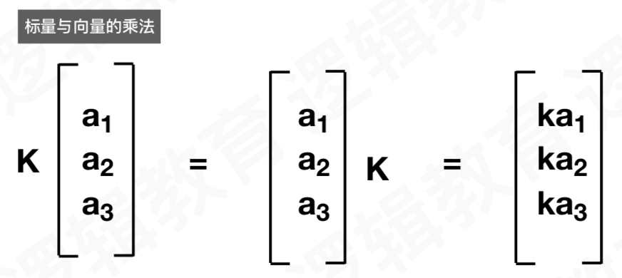 - 标量和向量相乘时,不需要写乘法。将2个量挨着写即表示相乘(常将标量写在左边)