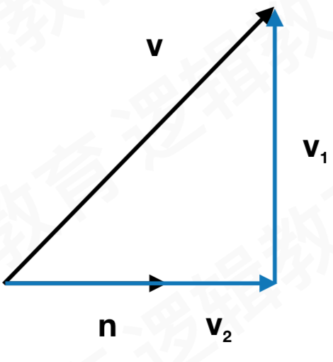 给定 2 个向量量 v 和 n . 能将 v 分解成 2 个向量: V1 和 V2; 它们分别平行于和垂直于 n; 并且满⾜足 v = v1 + v2; 一般平行向量 V2 为 v 在 n 上的投影