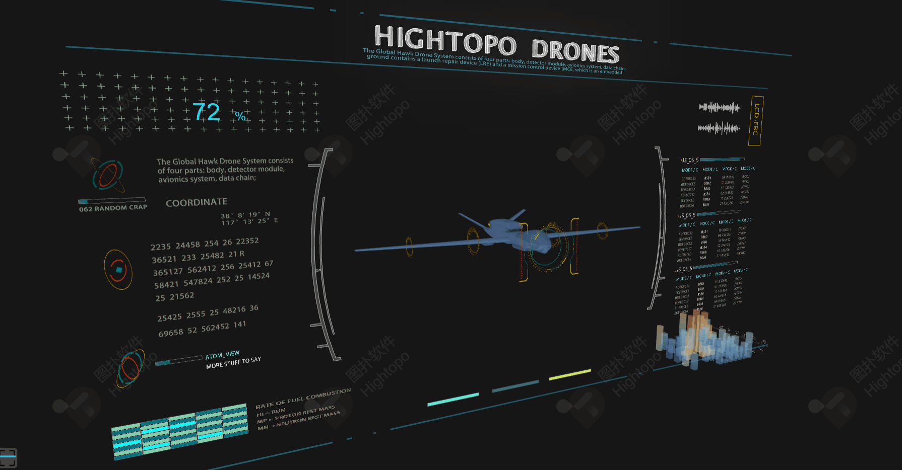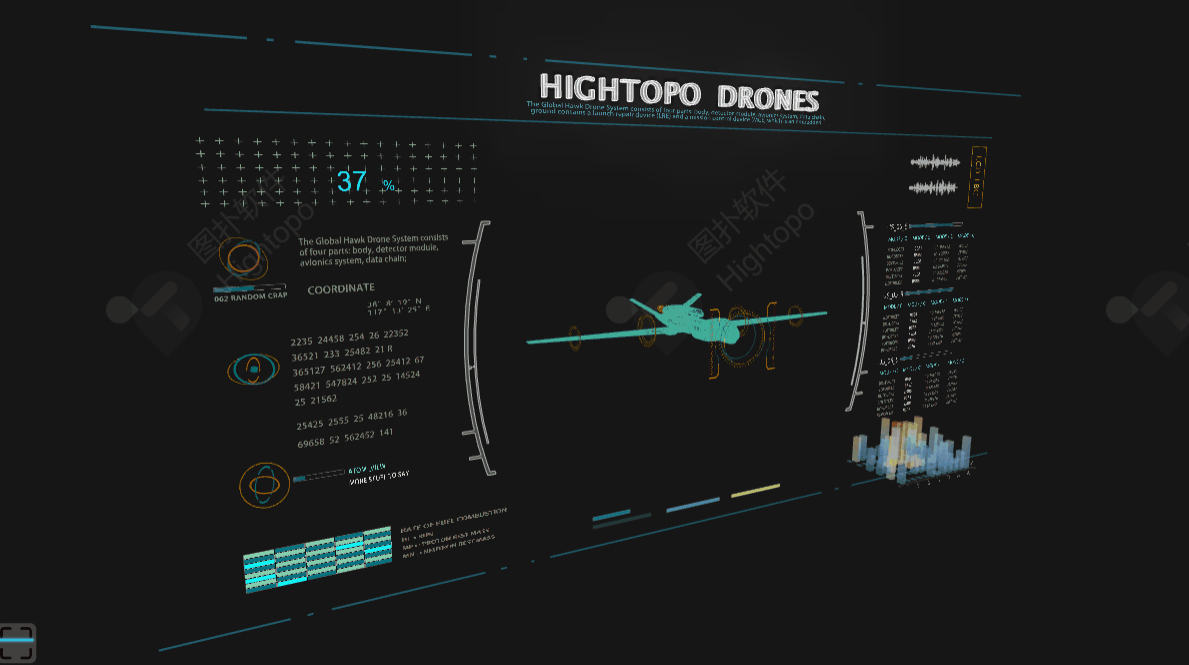 - 无人机及周边信息面板采用 3D 引擎进行场景搭建,用户可从场景任意位置对无人机进行查看。