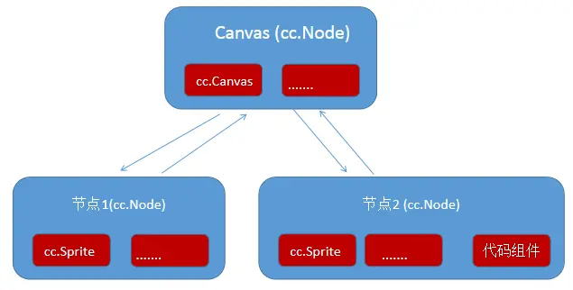 2: 每个cc.Component组件实例都有个成员node,指向它关联节点的cc.Node;