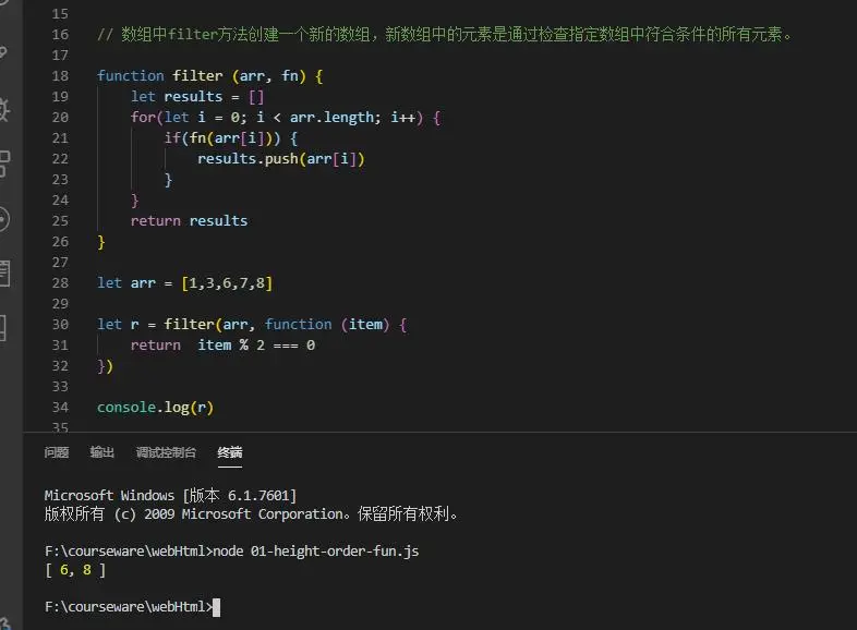 // 数组中filter方法创建一个新的数组,新数组中的元素是通过检查指定数组中符合条件的所有元素。