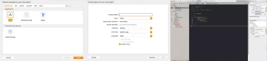 可以看到创建新工程时有了一套全新的模板基于 SwiftUI App Lifecycle 的跨平台项目。 代码也从原本的基于 UI/NS HostViewController 变成了基于 APP 的声明式描述,下面是代码的前后对比.