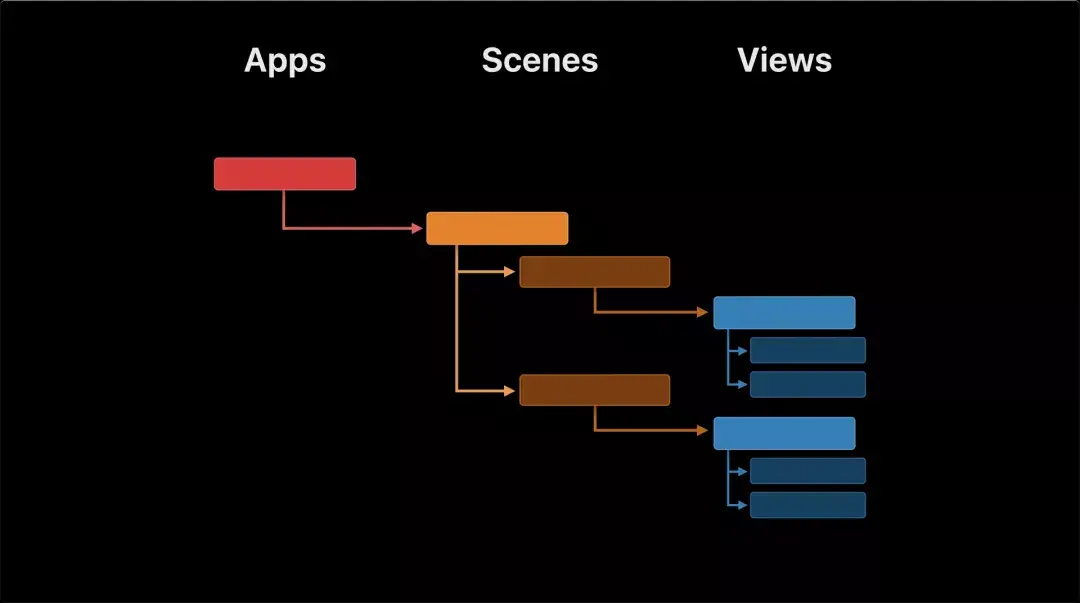 SwiftUI 将整个原有的平台差异部分抽象为 App 和 Scene,对于一个 mac/iOS/iPad/watch/tv/..应用,来说 App 代表了整个应用,Scene 代表了与 Window 相关的多窗口,有些设备只有一个 Scene 有些则有多个,虽然不同的 OS 确实存在差异,但是在语义层面达到了一致。