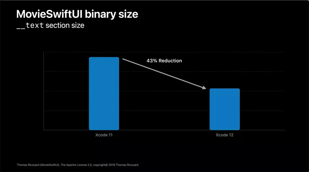 其次虽然 Swift 同样的语言出于对安全性考虑编译处理的指令会比 Objective-C 更多,但是如果UI部分都用 SwiftUI 来写呢?