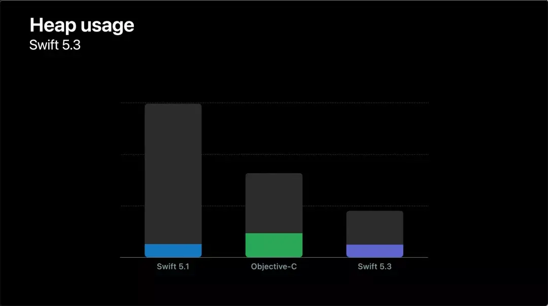 更进一步由于 Swift 选择使用值类型构建整个APP,值类型的有点在于更扁平化的内联数据结构去分配内存,而不是使用更多间接指针引用,减少了大量不必要的堆内存消耗,意味着整体内存使用量的降低。对整个 APP 的稳定性也有较大的提高。