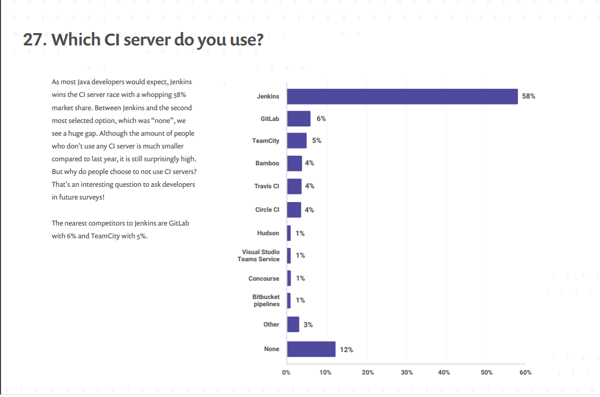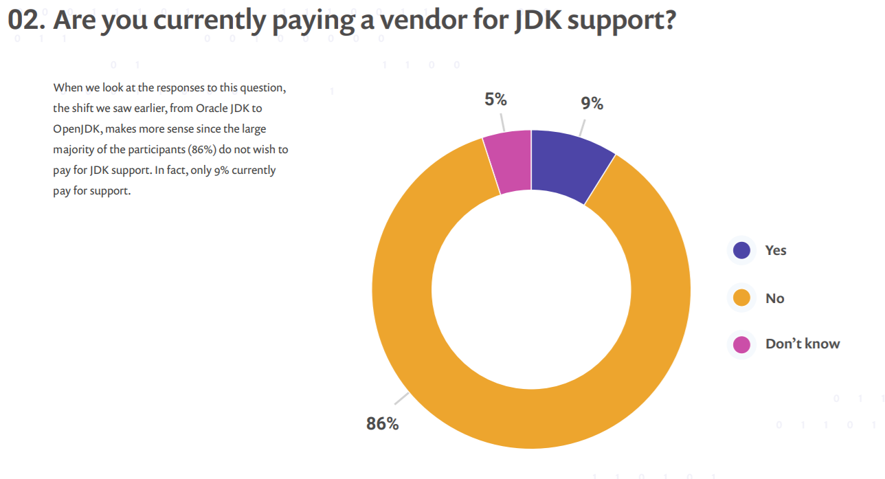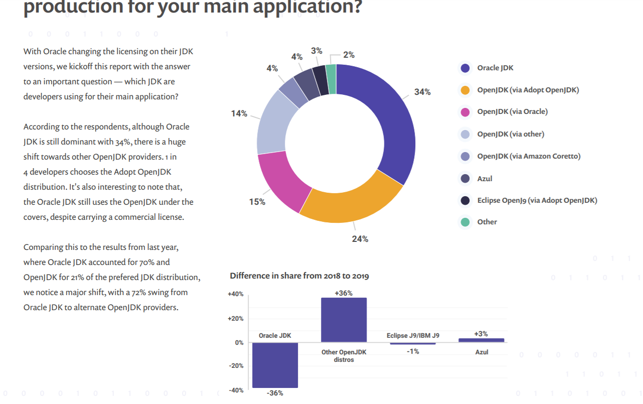 如图OracleJDK占据总使用量的34%,57%的用户仍然选择免费开源的openJDK