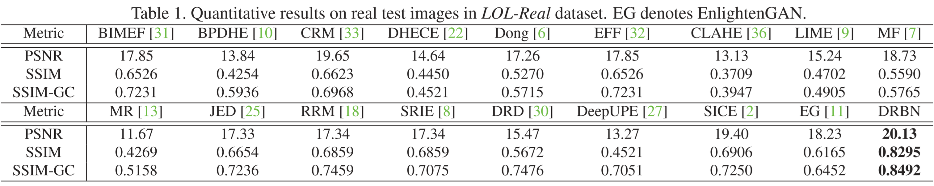文章提出了一个深度递归波段网络(deep recursive band network,DRBN),在递归带(DRBN)学习中,它通过4次迭代网络获得不同尺度的增强结果,通过计算这些增强结果的差值。在得到差值之后,在其波段重组阶段,文章将其进行融合以得到最终的增强结果。在网络最后,还添加了鉴别器以提高图像的真实性。文章表示,该网络能够使增强结果具有良好的细节,以及真实和高质量的特性。