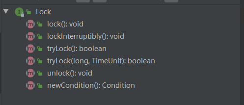 - 通过查看源码我们发现Lock下方法如上。下面我们简单介绍下方法功能