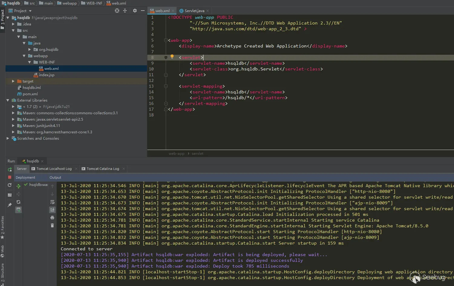 hsqldb的代码正好是开源的,那么这里就直接用源码来开启一个servlet吧。