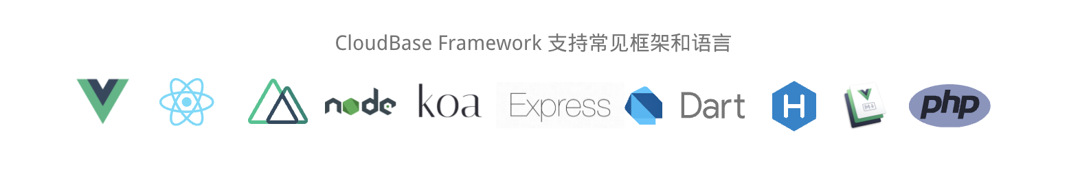 CloudBase Framework 目前支持了 Vue、React 等前端框架,也支持 Nuxt 等 SSR 框架,基于 Node 开发的应用如 Express、Koa 等也可以一键托管。除此之外,借助底层 Serverless 云应用的能力,也可以部署其他后端的应用(PHP、Java、Go 等),值得一提的是可以部署 Dart Server,可以配合 Flutter 实现 Dart 语言的云端一体化,这也是国内云厂商对 Dart 语言和生态的一大补充。