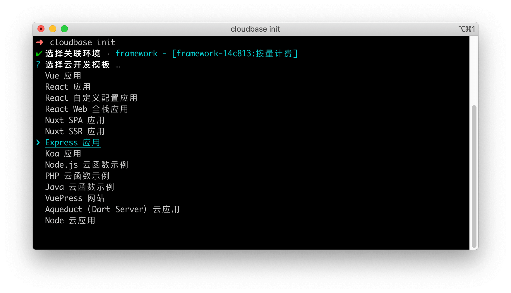 通过交互式地创建环境和选择模板来初始化应用