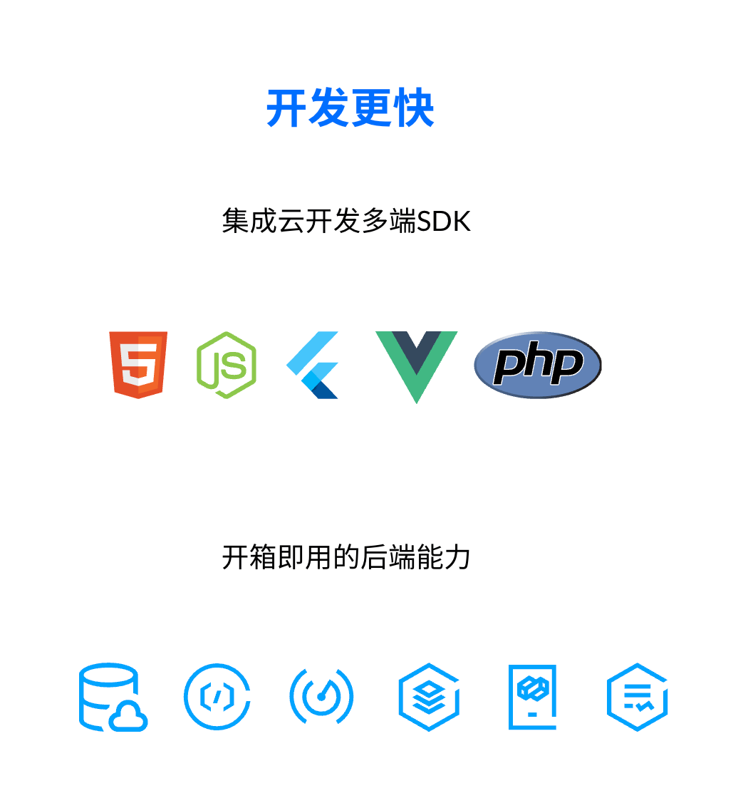 云开发一体化平台提供了开箱即用的原生的云能力,无需学习底层资源配置,无需运维和管理。
