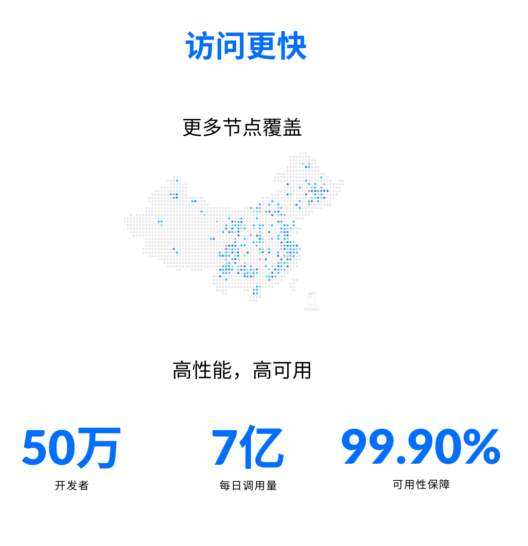在 50 万开发者,每日调用量 7 亿的规模下,可用性保障可以做到 99.90%