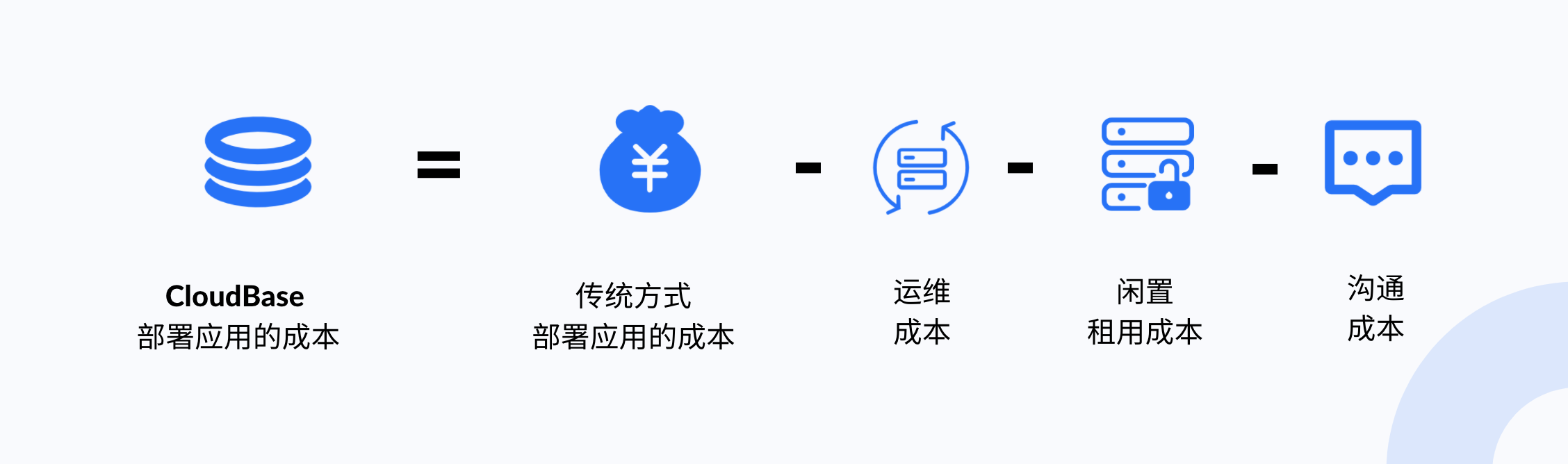 云开发平台具备了免运维,全托管,按量付费的特点,通过 CloudBase 部署应用的成本相比传统方式部署应用的成本,节省了运维成本、闲置租用成本以及多角色沟通的成本。