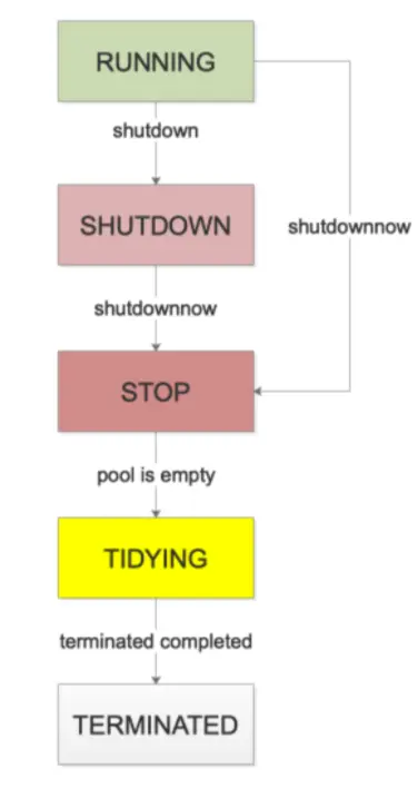 - TIDYING,清空状态,所有任务都停止了,工作的线程也全部结束了