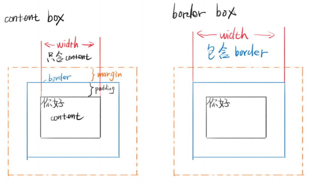 border-box边框盒模型:设置的宽度就等于=内容宽度+padding+border;添加的padding和border就在原先设置的width里