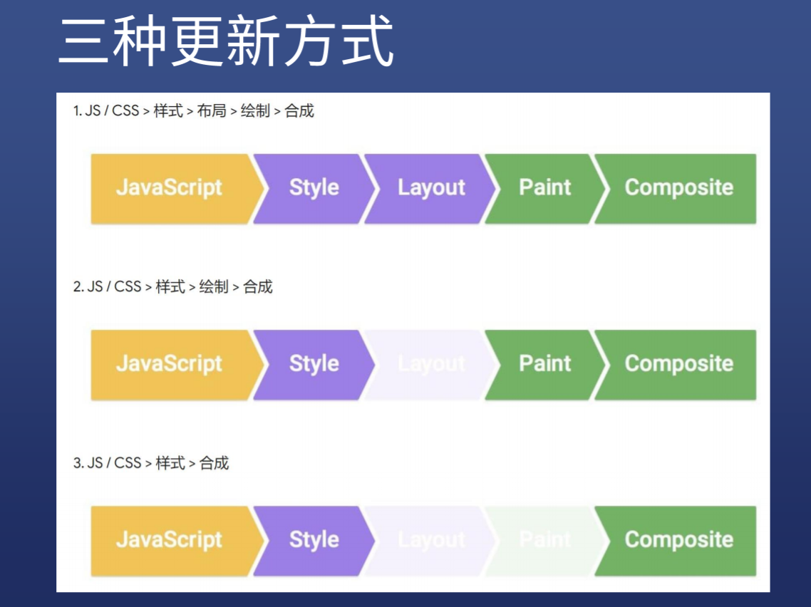 当元素改变或者样式改变时,页面会进行更新,更新方式也有三种