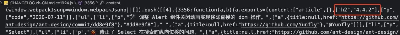 然后去 gh-pages 找到与此时间相近的提交记录,基本上就可以锁定是哪个版本的代码了,然后在 CHANGELOG 文件中第一行就可以验证是否是我们需要的版本啦。