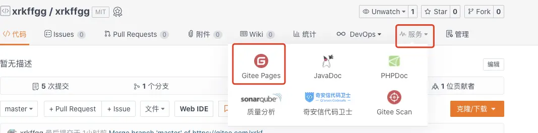 拿到编译的代码后,我们可以直接把代码放到我们刚才新建的 Gitee 仓库中。可以看一下我这个仓库的效果。