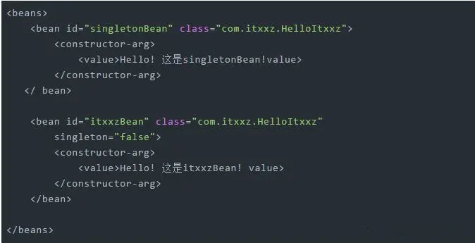 如下配置,就是在 HelloItxxz 类中创建一个 itxxzBean。