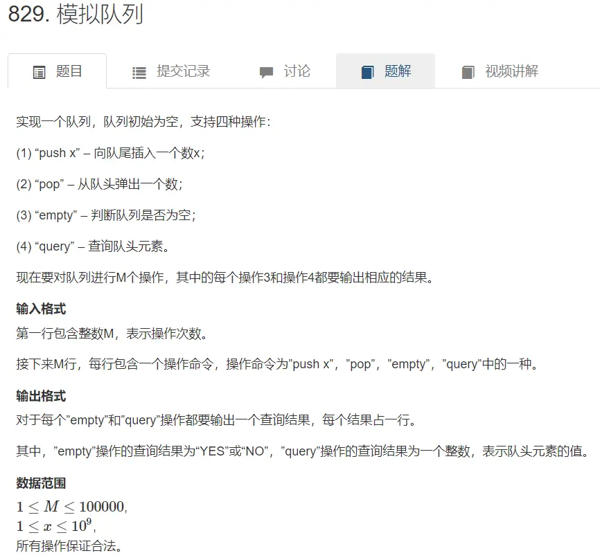 int q[N], head, tail; //用数组q模拟队列,head和tail分别指向队头和队尾