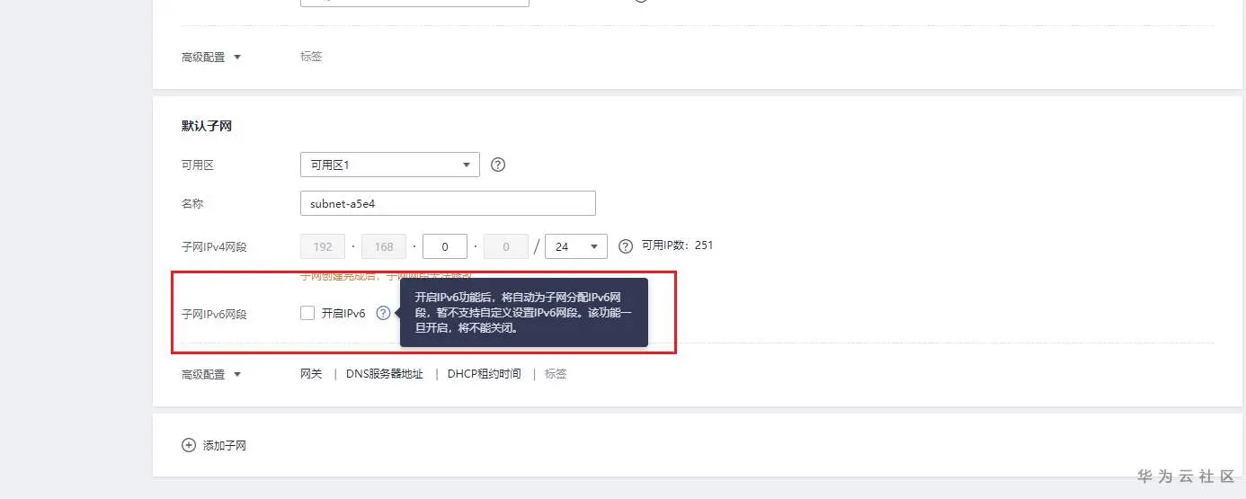 如果出现上述提示则说明选择的机型可以使用IPv6-双栈,选择“自动分配IPv6地址”。