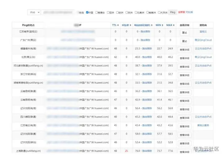 如何测试IPv6-EIP是否能被访问?可以使用Ping探测网站进行ping测试,如图: