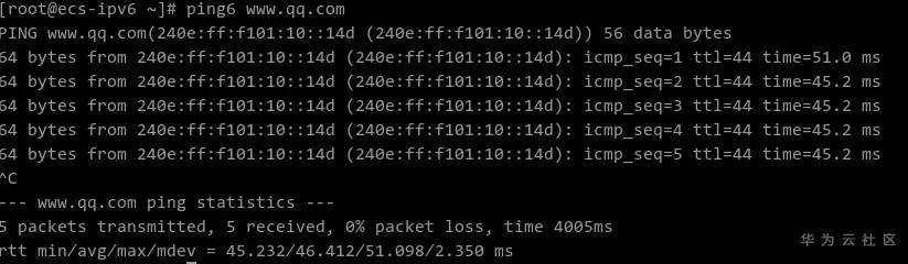 访问连通性测试:ping常见的支持IPv6访问的网站,比如ping6 www.qq.com