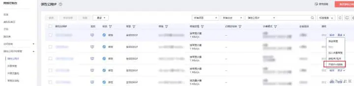 或者购买后在EIP界面“更多”处开启IPv6转换: