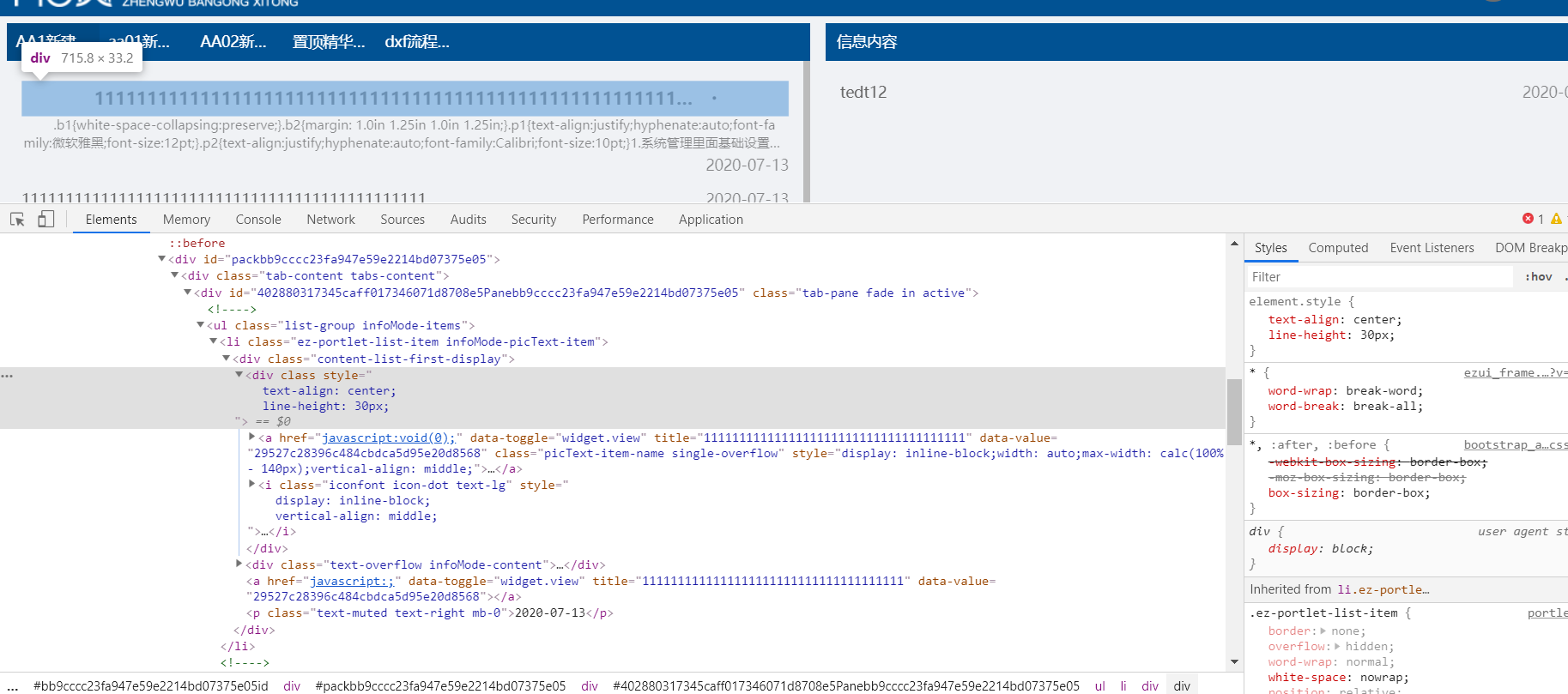 overflow奇怪现象 刘文方 2020-07-16 117 阅读1分钟 1.inline-block 和inline-block一起使用,如果对不齐,加下vertical-align:middle2.overflow-x 会截断y轴的absolute元素