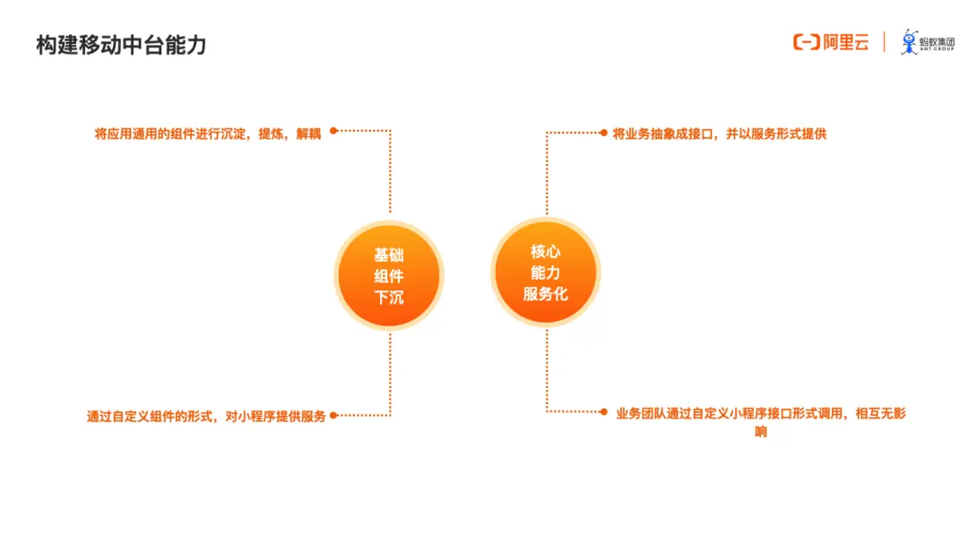 在我们完成移动中台能力建设之后,整体的能力就已经具备了,剩下的就是结合小程序框架,建设我们的移动前台能力。