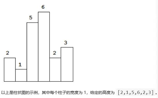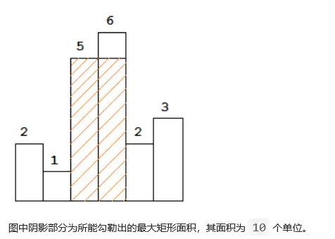 给定 n 个非负整数,用来表示柱状图中各个柱子的高度。每个柱子彼此相邻,且宽度为 1 。 求在该柱状图中,能够勾勒出来的矩形的最大面积。