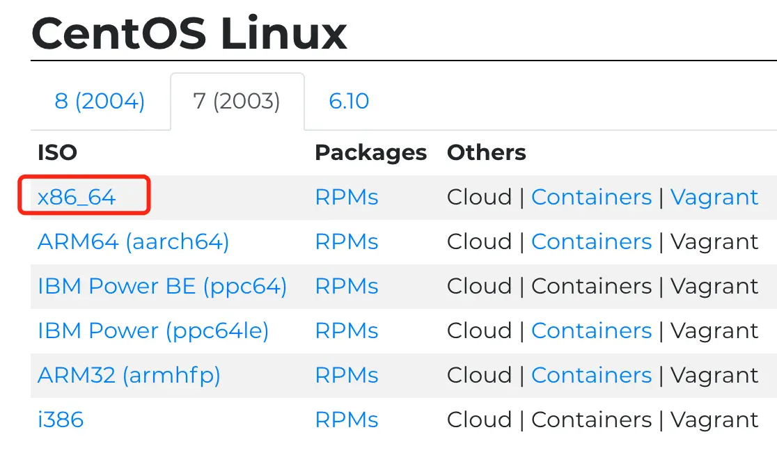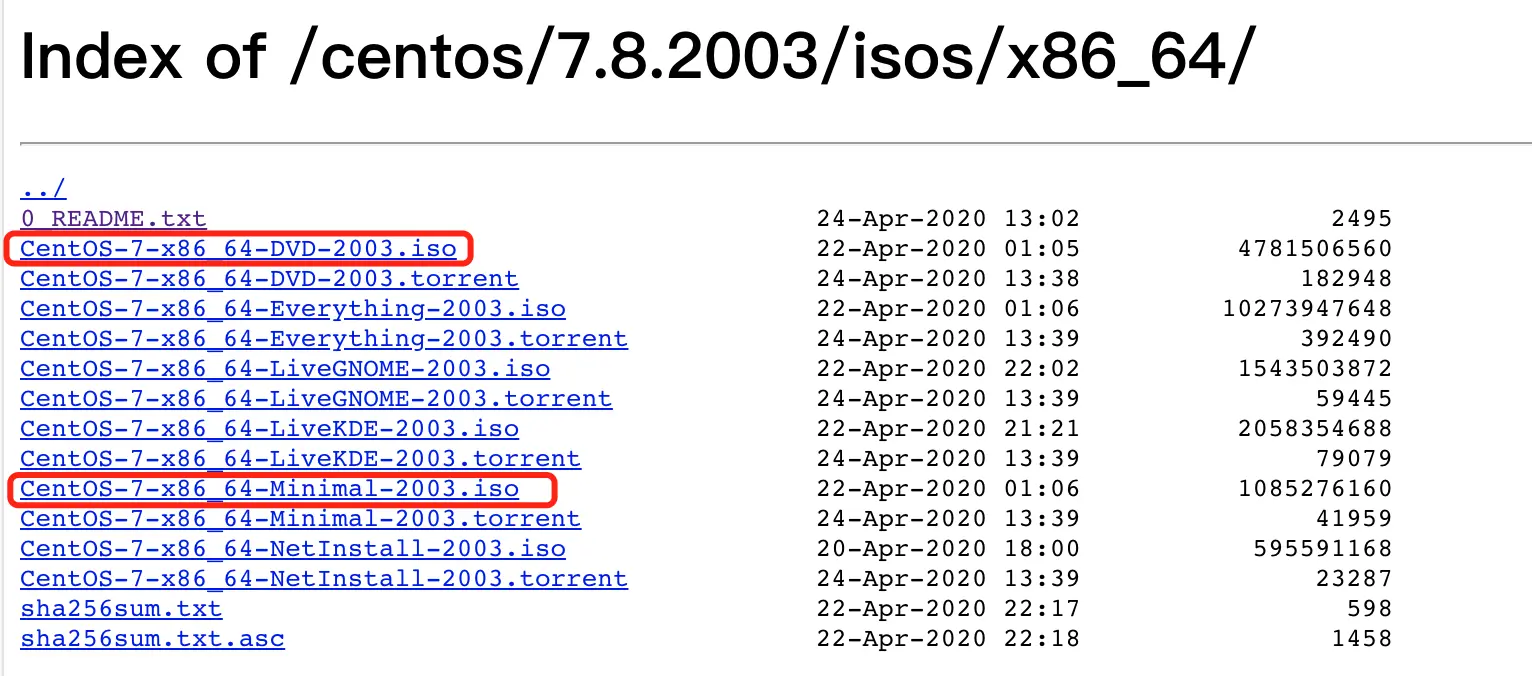 当我们下载CentOS 7 时会发现有几个版本可以选择,如下:
