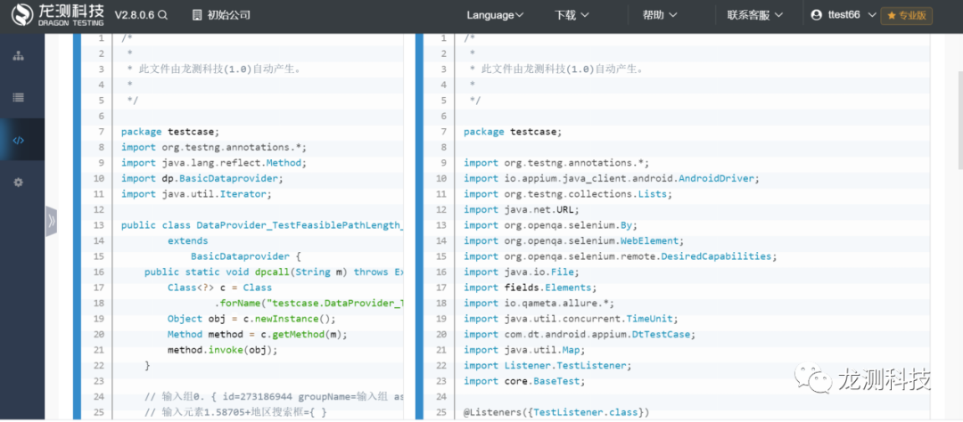 测试代码(龙测自动生成):