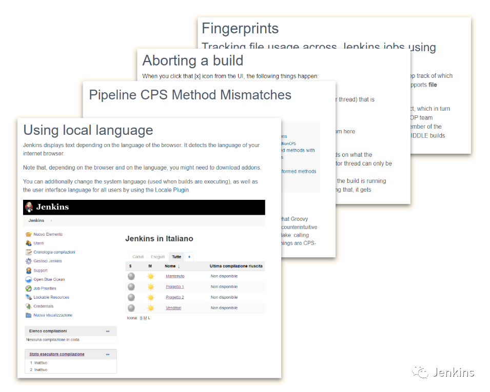Jenkins 技术文档是我们项目的重要组成部分,因为它是正确使用 Jenkins 的关键。好的文档可以指导用户,并鼓励选择好的实现方式。这是用户体验的关键部分。