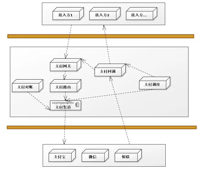 | 应用(接入方) | 使用支付网关的业务方,比如:电商业务应用、广告业务应用 |