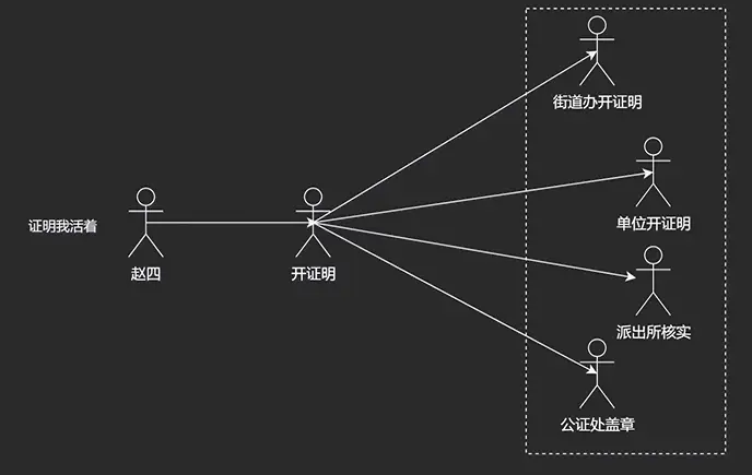 System.out.println("中介看房流");