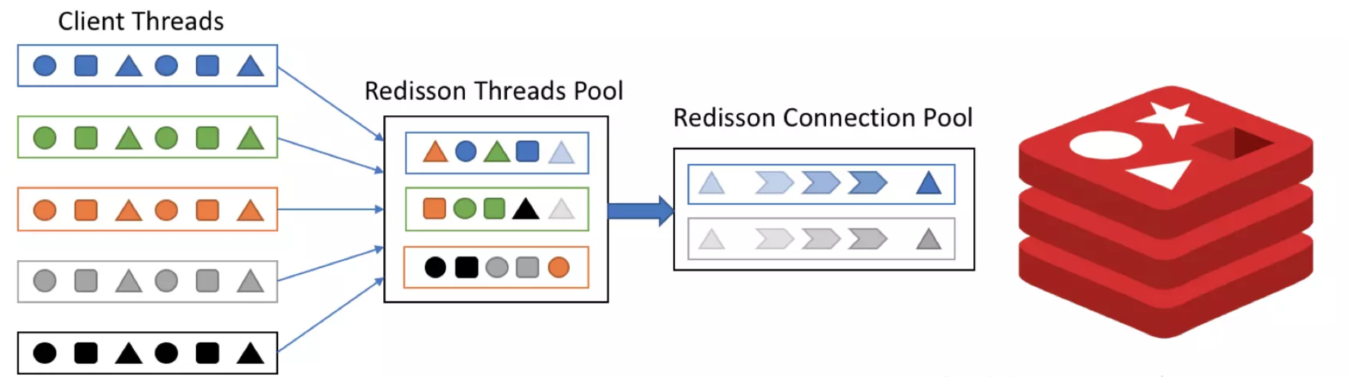 redisson客户端:采用Netty异步编程框架,使用了与Redis服务端结构类似的事件循环(EventLoop)式的线程池,并结合连接池的方式弹性管理连接。最终做到了使用少量的连接就可以满足对大量线程的要求,从根本上缓解线程之间的竞争关系。