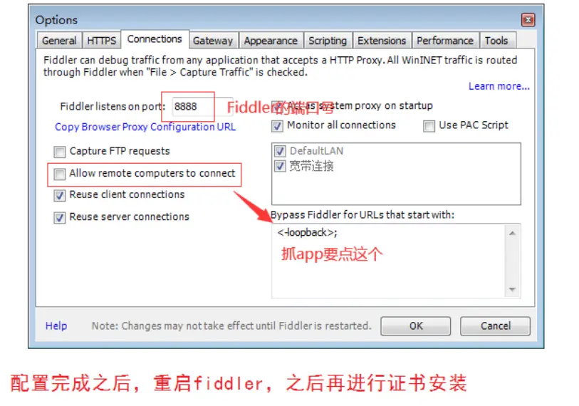 三、Fiddler抓取app配置